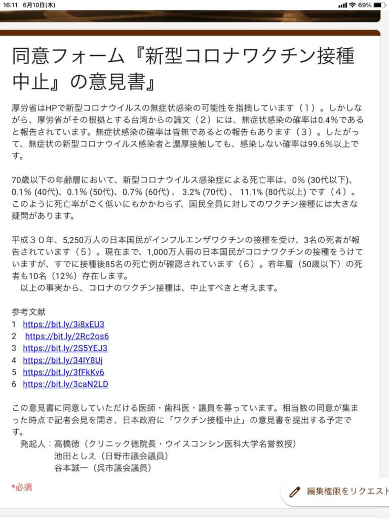 ウィスコンシン医科大学名誉教授 高橋徳先生をはじめ、ずっと水面下で活動してこられた340名の先生方がついに『新型コロナワクチン接種中止』の嘆願書を提出されます。