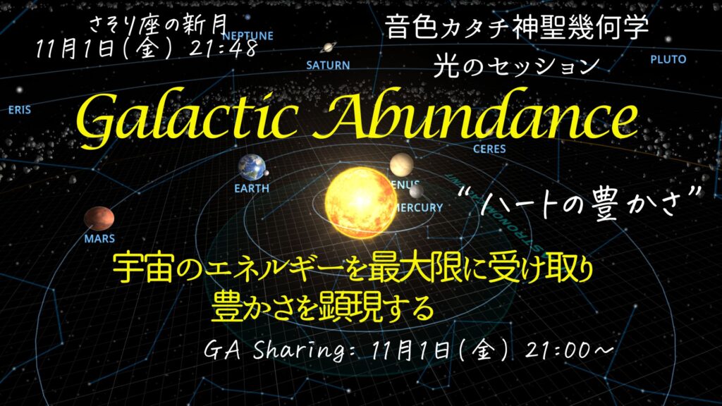 11/1、Galactic Abundanceプログラム始まって2回目の新月。