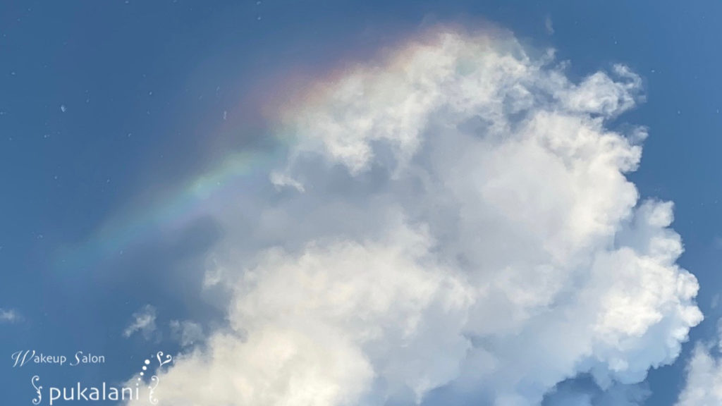 ハワイから大阪への飛行機の中で遭遇した虹!
