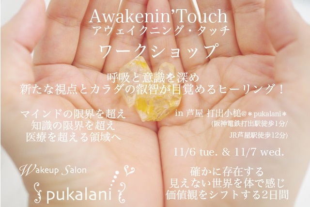 11/9〜11/10の平日2日間でアウェイクニングタッチワークショップの参加者を募集します。 ハンズオンヒーリングをはじ …