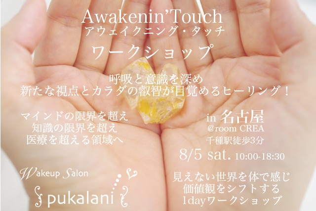 ☆名古屋開催決定☆ 名古屋にて、1dayにぎゅぎゅっと凝縮した形で アウェイクニング・タッチのワークショップを開催します。 ハンズオンヒーリングをはじめとするエネルギーヒーリングと その奥にある叡智と …